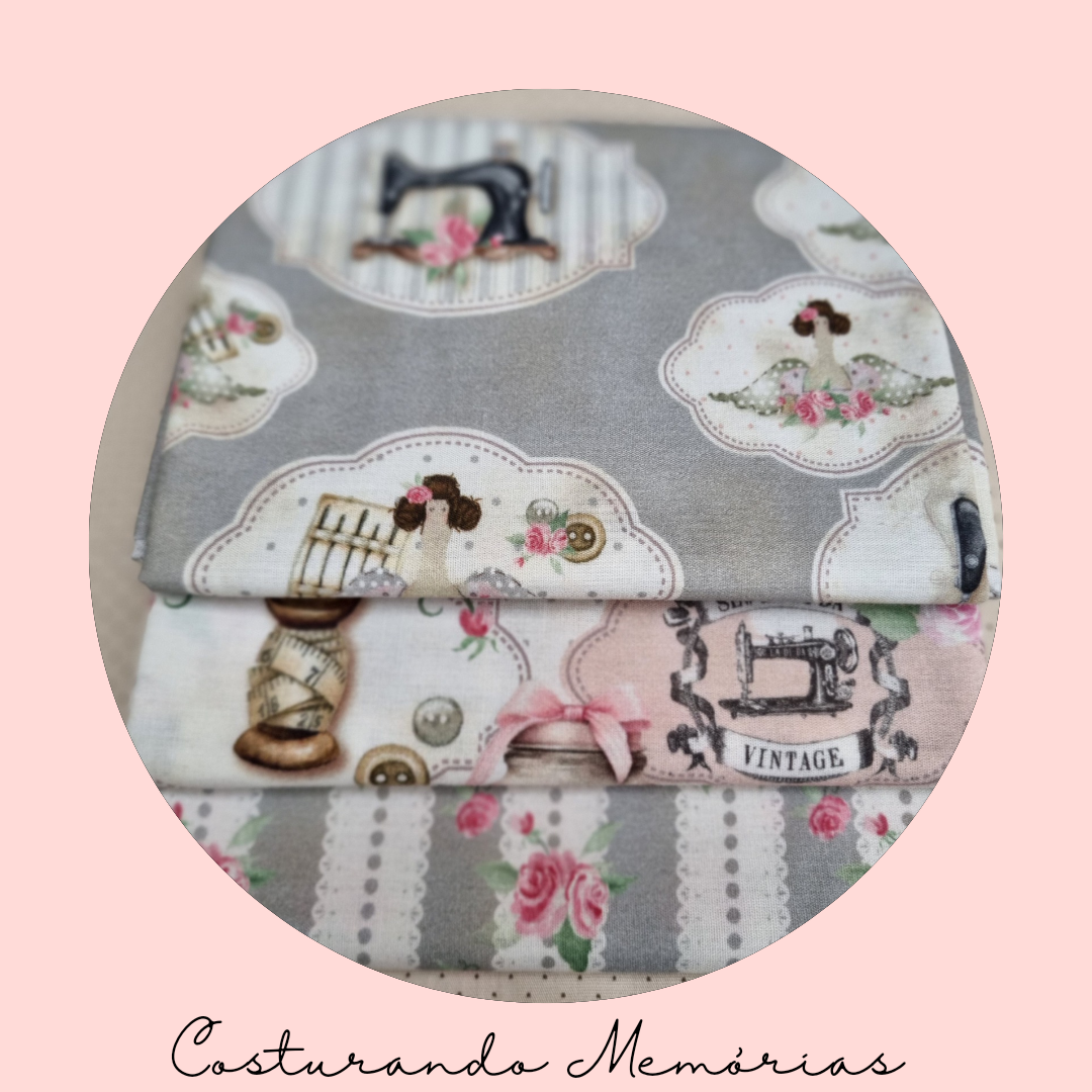 Tecido tricoline digital Costurando Memórias kit com 3 estampas de 50cm x 1 m