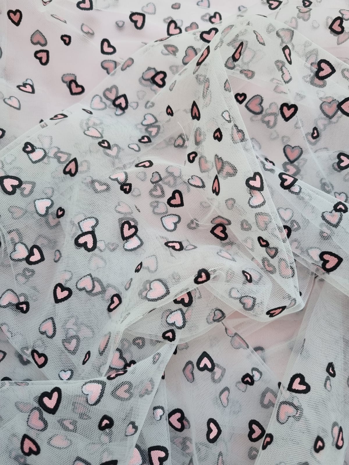 Tule pintado de coração, pedaço de 60cm x 1.5 mt